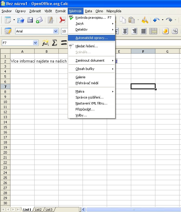 (1) V hlavní nabídce zvolte položku Nástroje a z její nabídky položku Automatické opravy .
